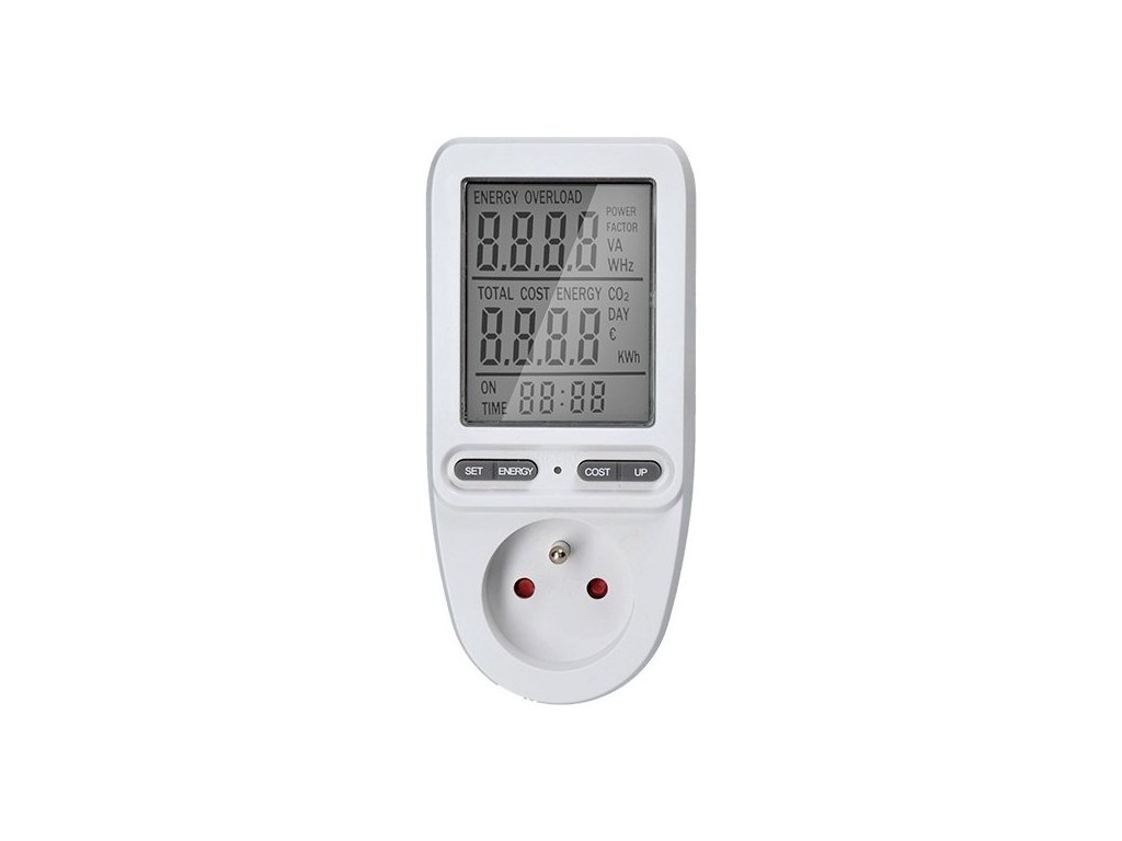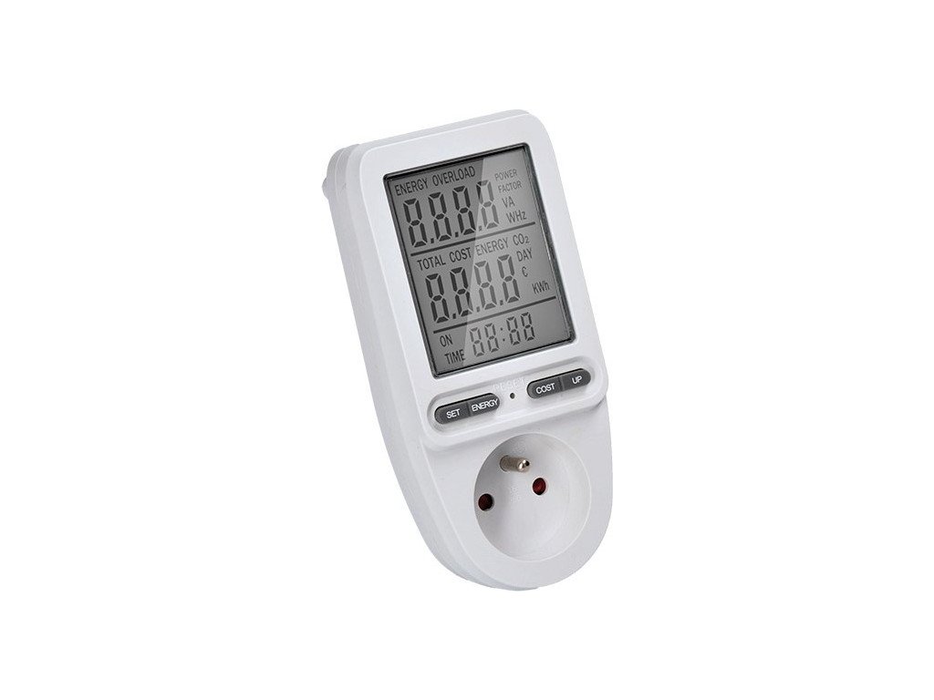 Zařízení zobrazí na přehledném 3" displeji napětí, proud, frekvenci a okamžitý výkon. Přímo na měřiči můžete také zadat aktuální cenu za elektřinu a dozvíte se tak přesně, na kolik vás provoz daného spotřebiče vyjde.