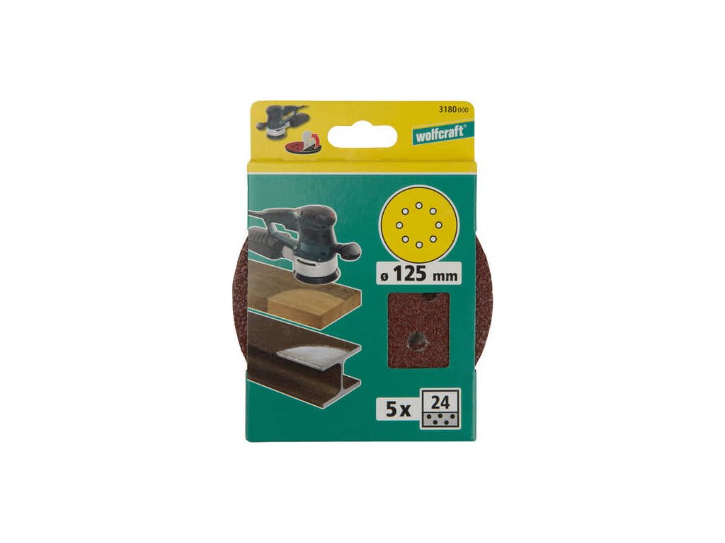 WOLFCRAFT - Kotouč brusný přilnavý 125mm zrnitost 180, 5 ks