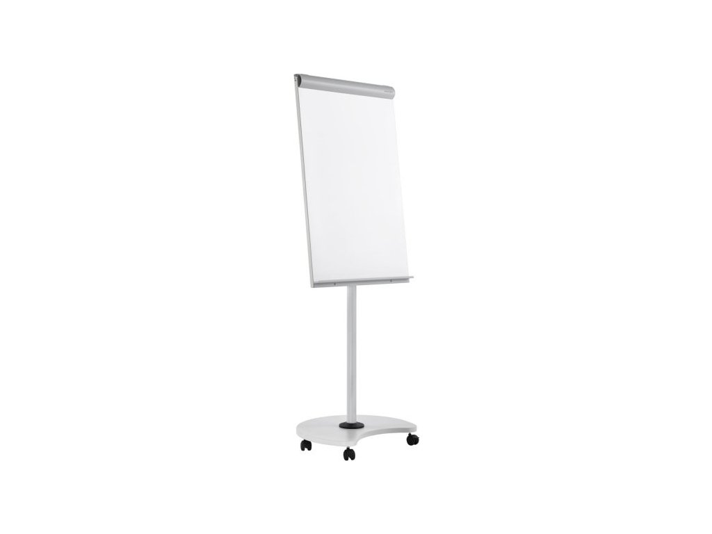 Mobilní Flipchart s výklopnými rameny včetně startovní sady příslušenství. Velmi snadná manévrovatelnost, vhodný pro prezentace, konference, výuku. Práškovým lakováním krytá, magnetická za sucha popisovatelná plocha velikosti 68 x 97 cm. Stabilní, mobilní podstava. 5 koleček s možností aretace. Výklopná ramena, zvětší prezentační plochu až na trojnásobek. Velmi snadno na sucho stíratelná stopa popisovače. Kovová zadní stěna, zaoblené hrany. Výklopná horní krycí plastová lišta, nastavitelné trny pro zavěšení papíru. Integrovaná, na okrajích otevřená odkládací lišta pro popisovače a příslušenství. Odolný obal pro bezpečný transport při dodání. Startovní sada obsahuje: popisovač, 3 listy flipchart papíru a 4 magnety
