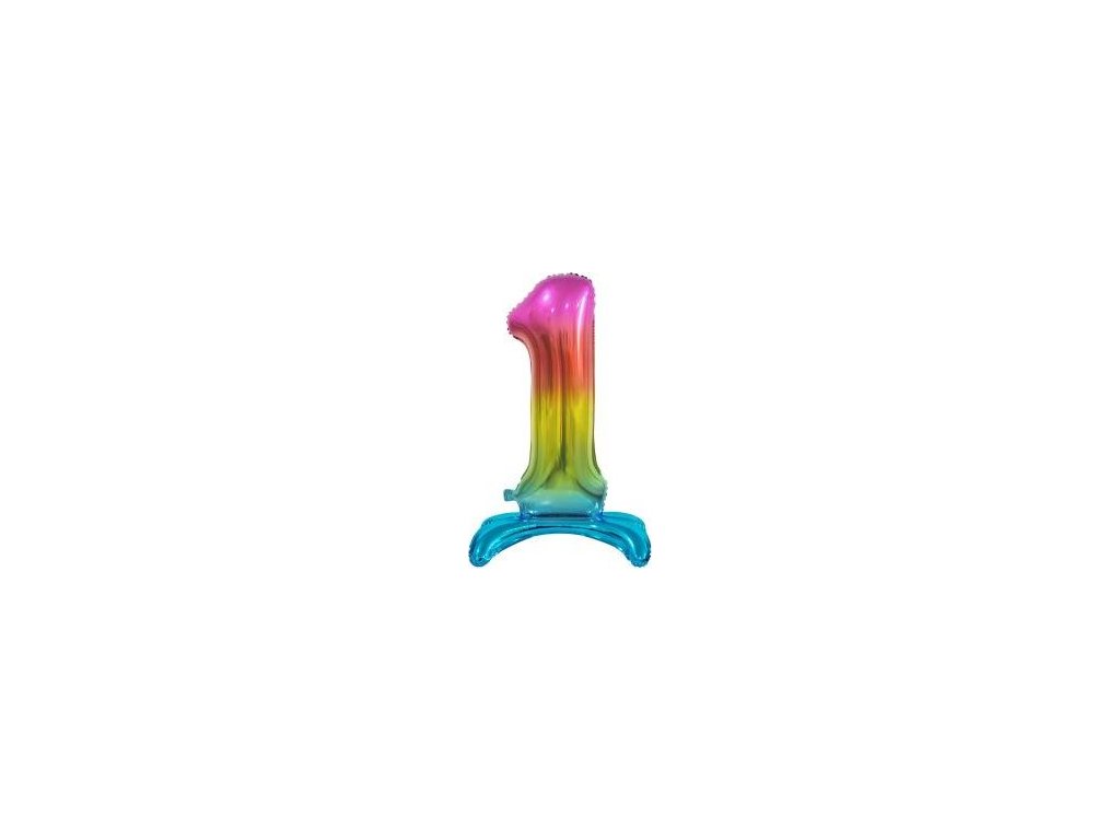 Balón foliový číslice DUHOVÁ na podstavci , 74 cm - 1