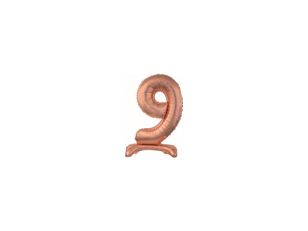Balón foliový číslice RŮŽOVO ZLATÁ / ROSE GOLD na podstavci, 74 cm - 9