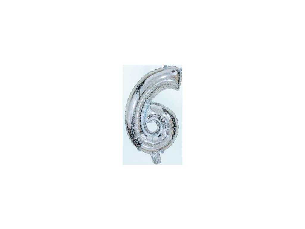 Balón foliový číslice STŘÍBRNÁ 35 cm - číslice 6 (NELZE PLNIT HELIEM)