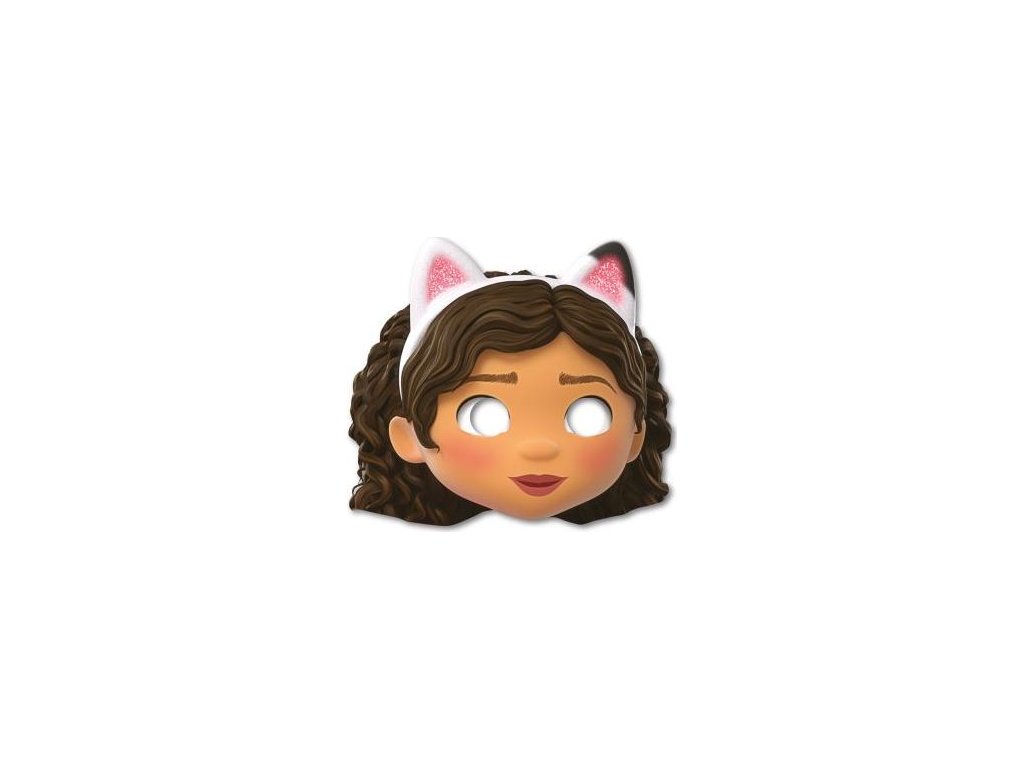 Papírová maska s motivem Gábiny z pohádky Gábinin kouzelný domek je ideální doplněk na dětskou oslavu nebo karneval.