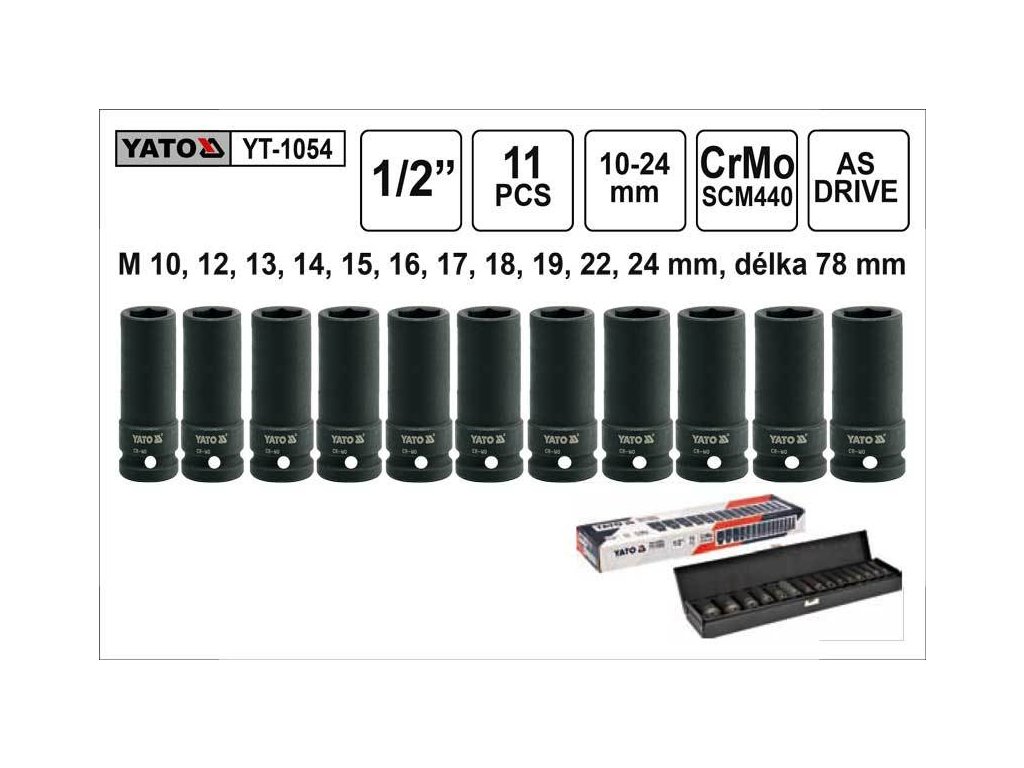 YATO Gola ořechy šestihranné kované prodloužené 1/2" sada 11 kusů 10-24mm YT-1054