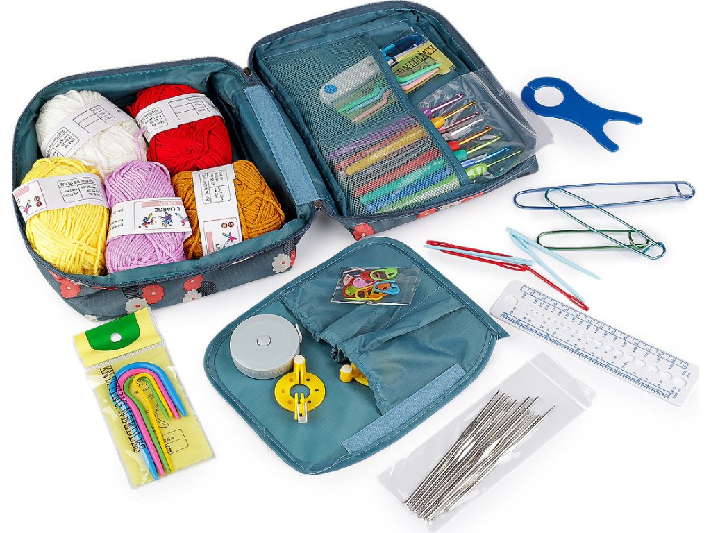 Sada háčků a pomůcek na háčkování v pouzdře