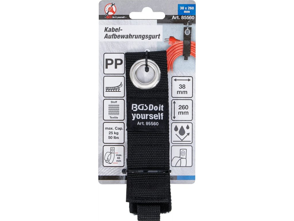 BGS Technic popruh, 50x660mm, organizer pro uložení kabelů, hadic apod, stavitelný, 170mm