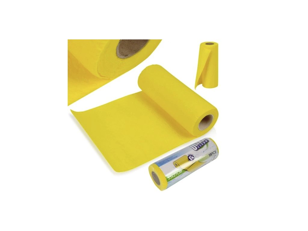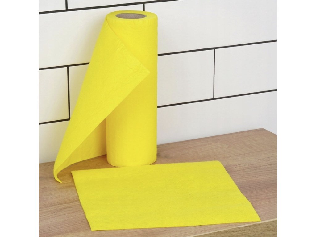 - Odolné a savé - Utěrky jsou vyrobeny z 80% viskózy a 20% polyesteru ve žluté barvě. Utěrky jsou velmi savé a odolné.
