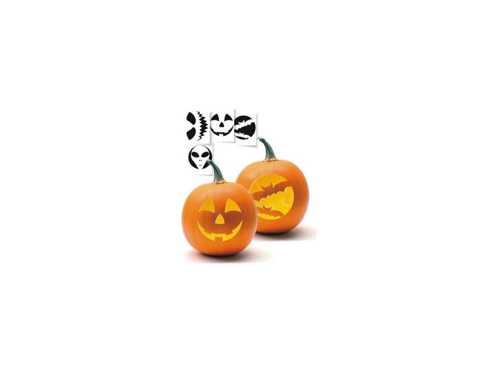Originální sada 10 ks různých šablon na dýně, s pomocí kterých vytvoříte ty nejstrašidelnější dýně na Vaší Halloween párty.