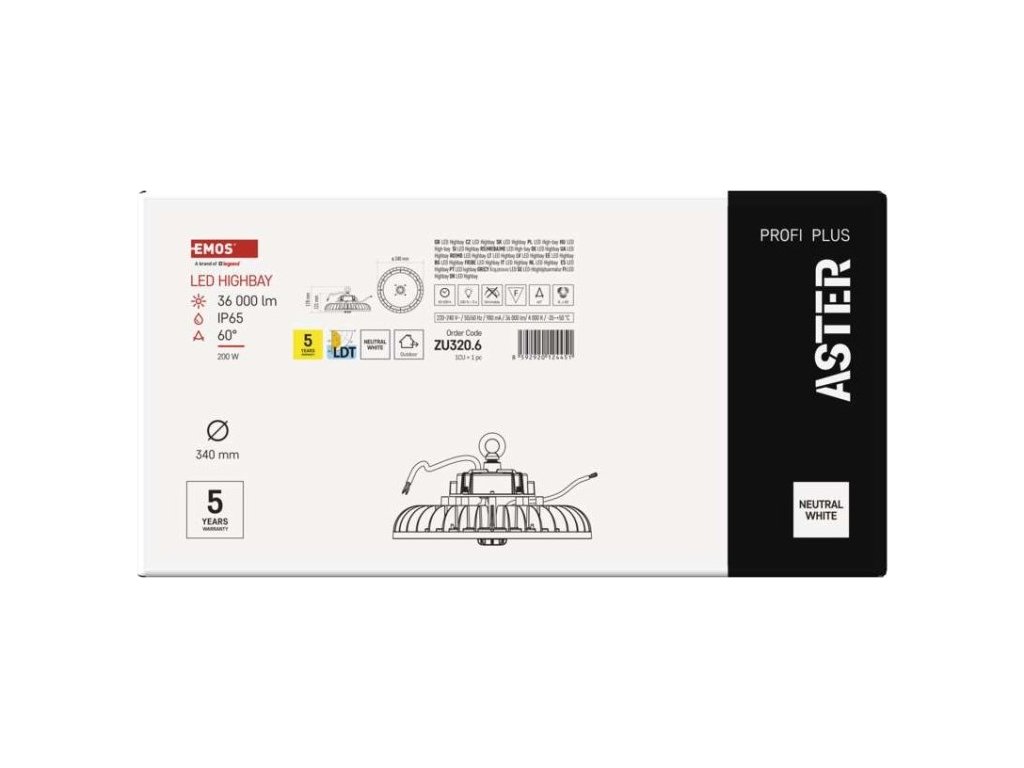 LED průmyslové závěsné svítidlo HIGHBAY ASTER 90° 200W