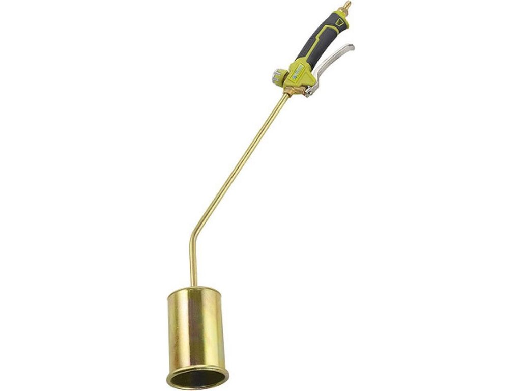Izolatérský hořák o výkonu 54 kW s rukojetí vybavenou rychlo-regulací.