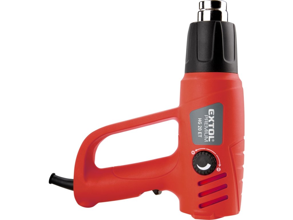Pistole horkovzdušná EXTOL PREMIUM, teplota 50 až 600°C, napětí/frekvence: 230V/50Hz, příkon: 2000W, hmotnost: 0,6kg, balení - kufr