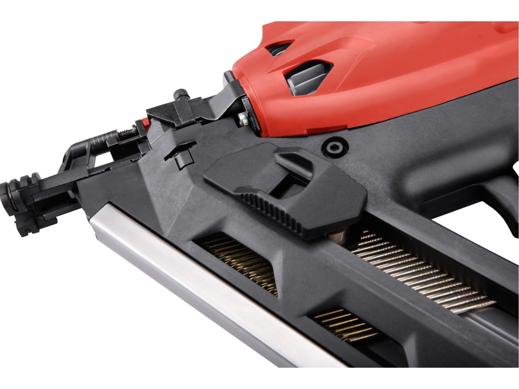 Silná hřebíkovačka na konstrukce se zážehovým plynovým pohonem je určena pro náročné nebo celodenní práce ve výškách a na stavbách, pro výrobu konstrukcí ze dřeva např. stloukáním krovů při stavbě střechy a celých dřevostaveb, pro výrobu bednění apod. s použitím hladkých či vroubkovaných hřebíků o délce 50-90 mm s úhlem sklonu v pásu 34°. Hřebíkovačka umožňuje nastřelit mnohonásobně více hřebíků na jednu plynovou kartuš (až 1200ks) a 5000ks na jednu baterii oproti čistě aku hřebíkovačkám. V porovnání s pneumatickými hřebíkovačkami zase nemusíte tahat kompresor s hadicemi a hřebíkovačka má tichý provoz. Hřebíkovačka umožňuje snadné nastavení hloubky zaražení hřebíku do dřeva. Při přerušení práce ji lze zavěsit za pracovní opasek. Díky tomu, že je hřebíkovačka poháněna zážehem plynu z malé plynové kartuše, je lehká a má vysoký výkon. Součástí hřebíkovačky je také malá a lehká odnímatelná nabíjecí Li-ion baterie sloužící pro zážeh plynu. Náhradní nádobky s hořlavým plynem o objemu 80 ml určené pro pohon plynových hřebíkovaček lze zakoupit v obchodní síti, např. od výrobce BOSTITCH, objednávací specifikace nádobky: FC 80MLHPB nebo ekvivalent od jiných výrobců.