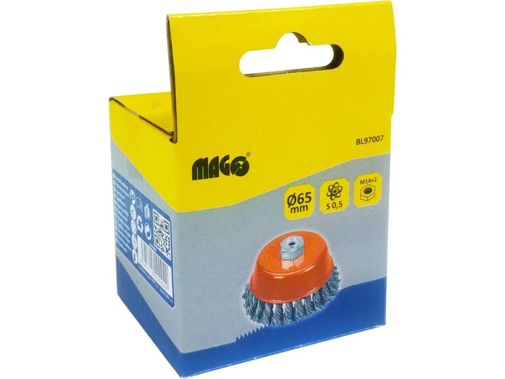 Kartáč rotační hrnkový 65mm copánkový pro úhlovou brusku (TR253133)