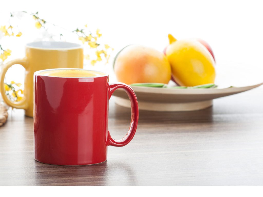 Barevný keramický hrnek, uvnitř bílý, 300 ml.