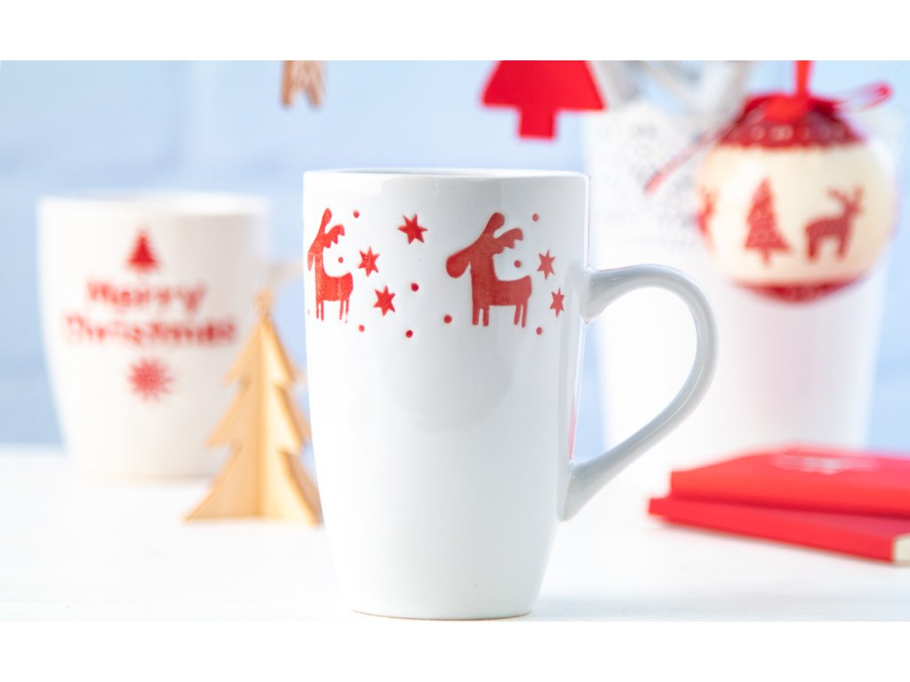 Porcelánový hrnek s vánočním designem, 400 ml. V papírové dárkové krabičce.