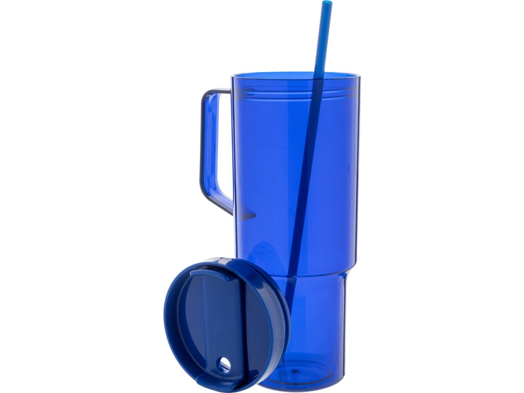 Jednostěnný cestovní hrnek z RPET s PP víčkem na pití a brčkem v odpovídající barvě. 1200 ml.