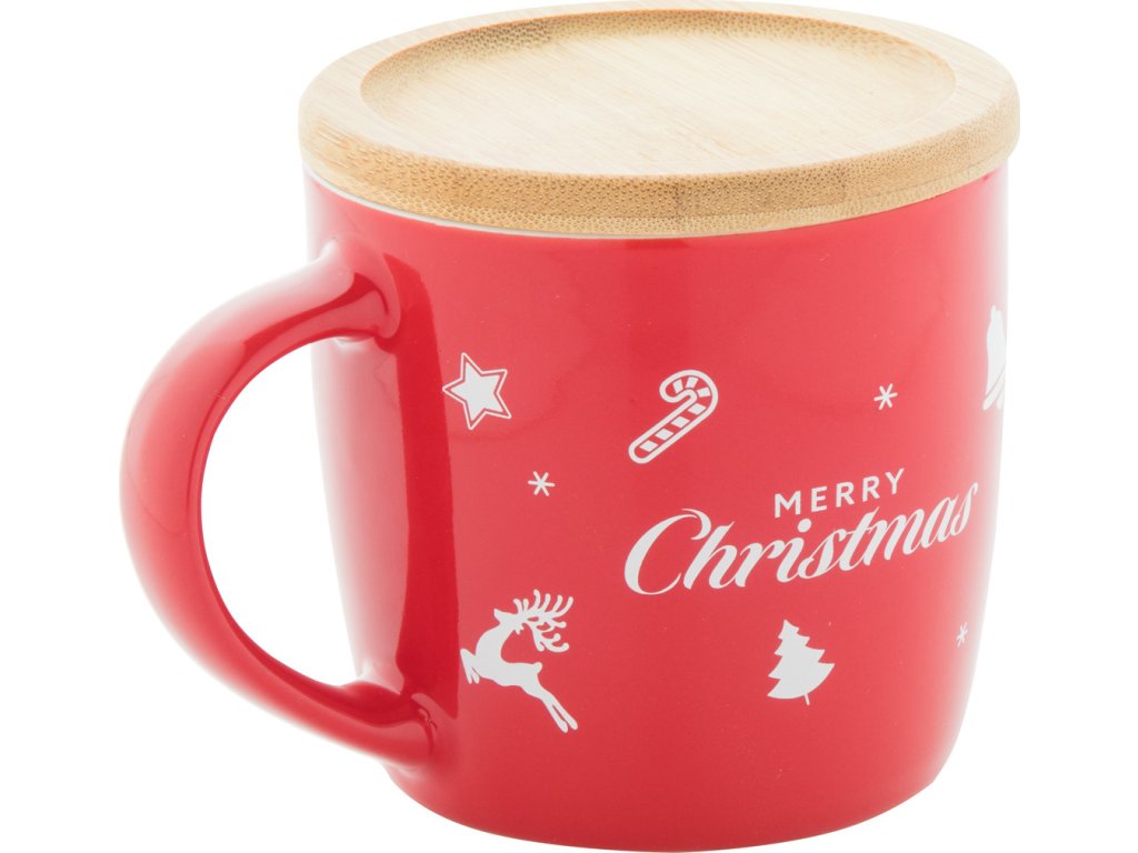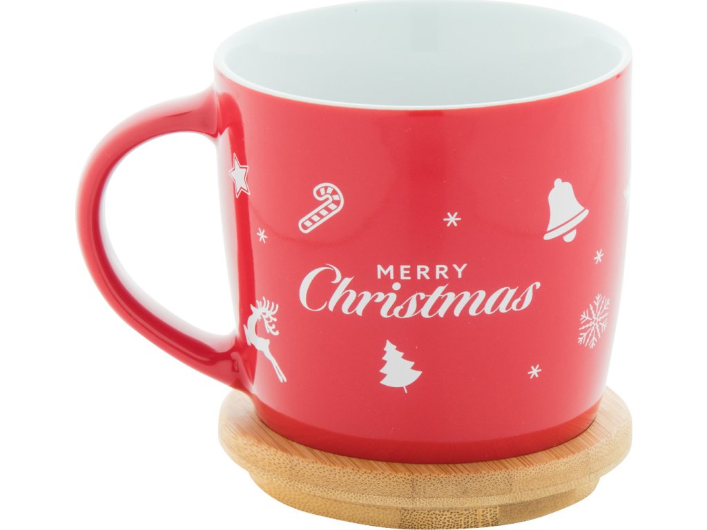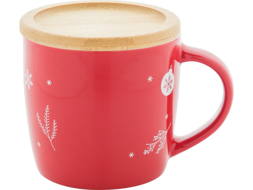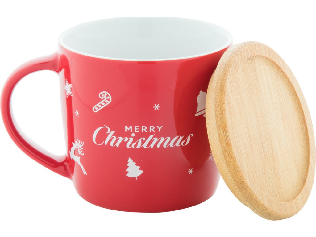 Vysoce kvalitní keramický hrnek s bambusovým táckem a vánočním designem, 370 ml. V kraftové papírové krabici.