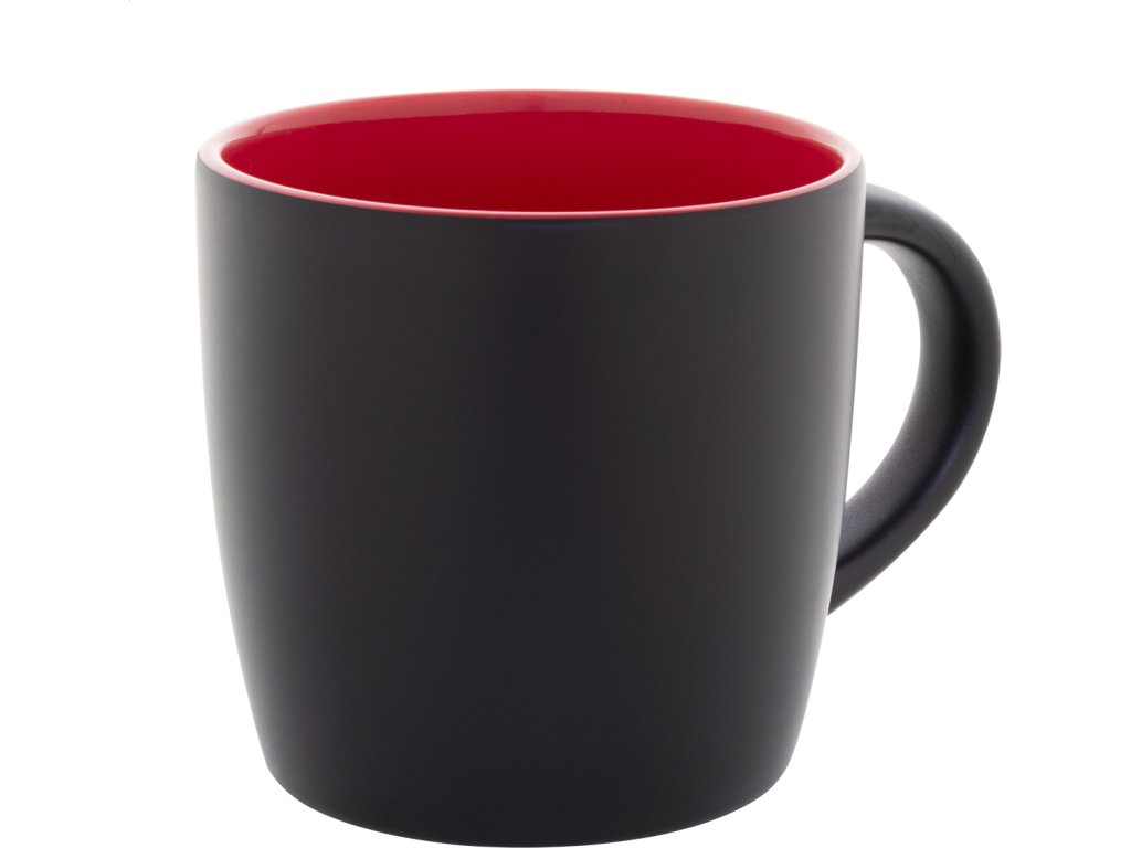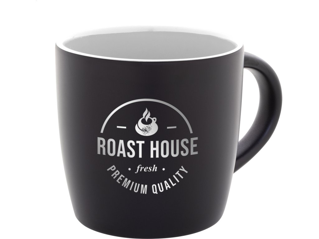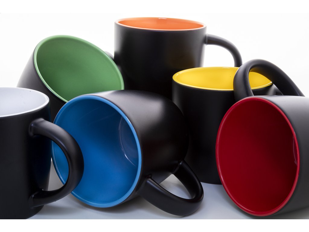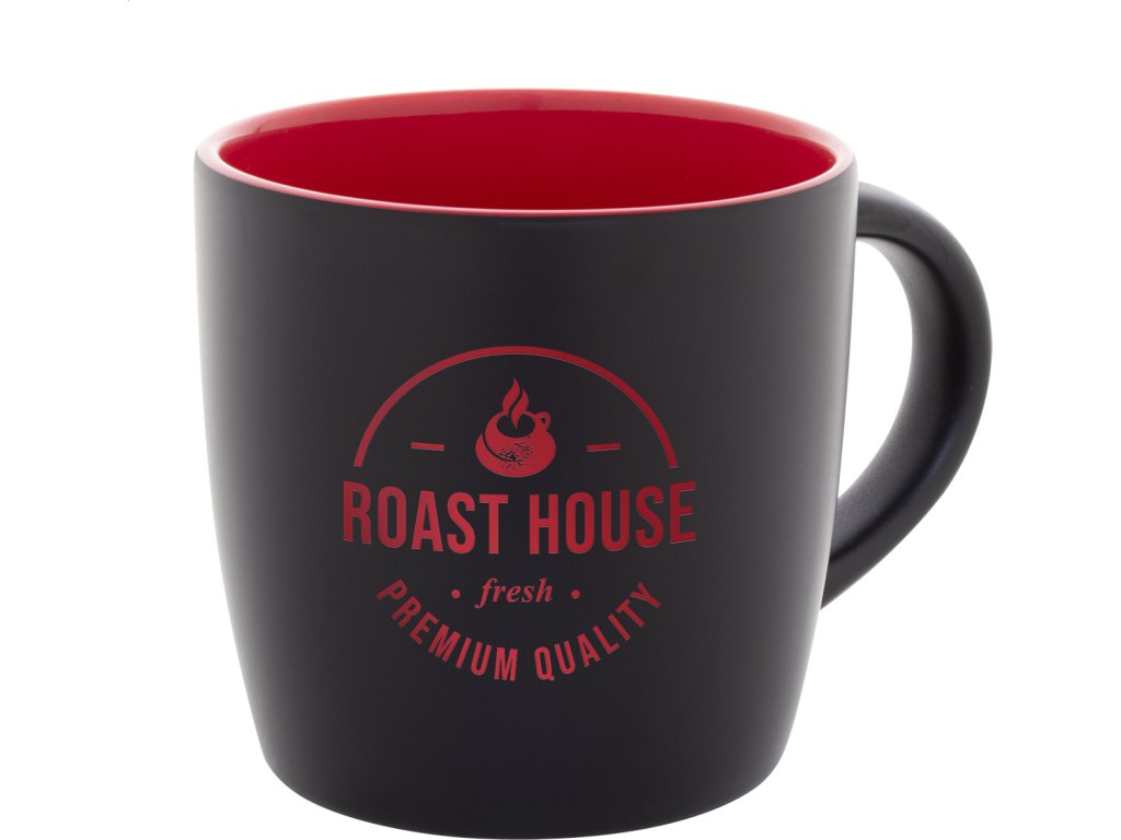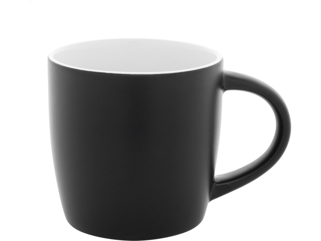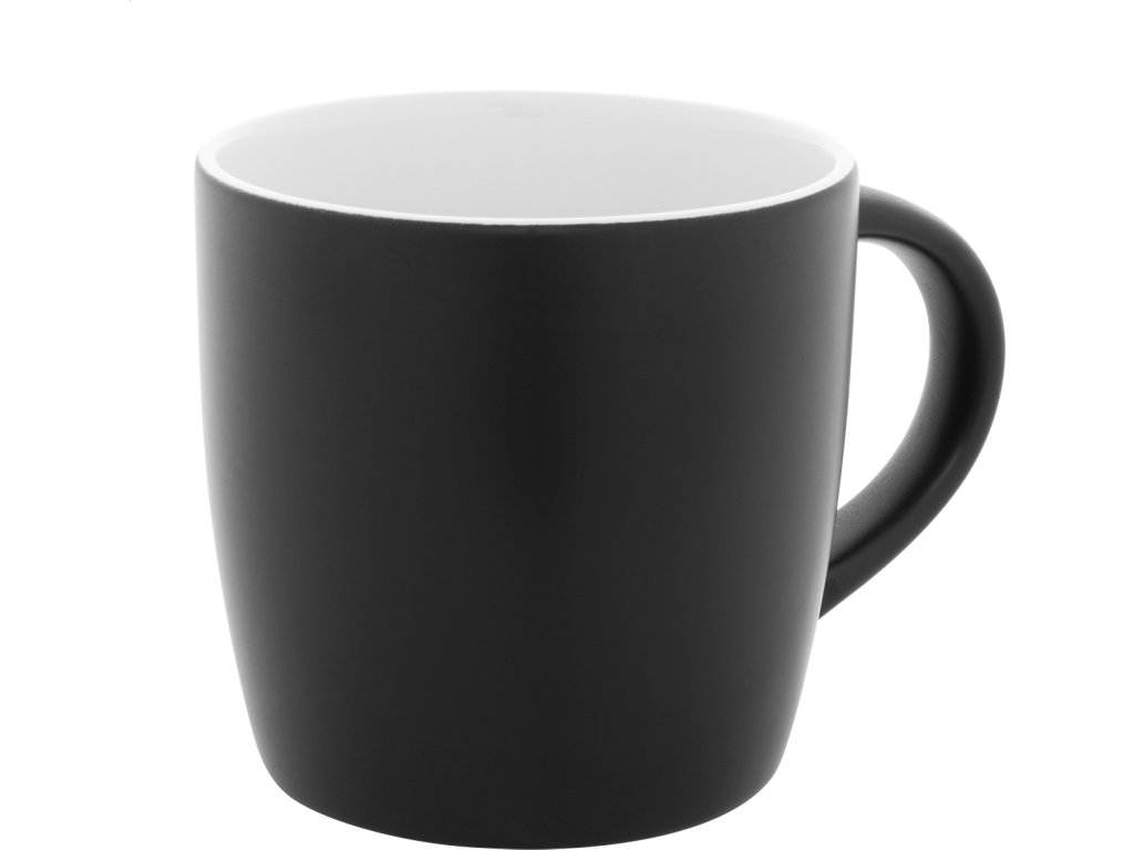 Černý keramický hrnek s barevným vnitřkem, 300 ml. Se speciální vrstvou pro gravírování, gravírované logo ladí s vnitřní barvou. V kraftové papírové krabici.