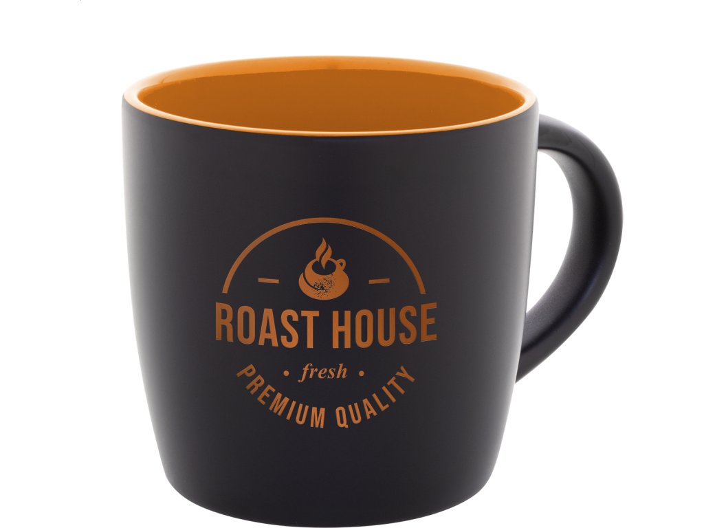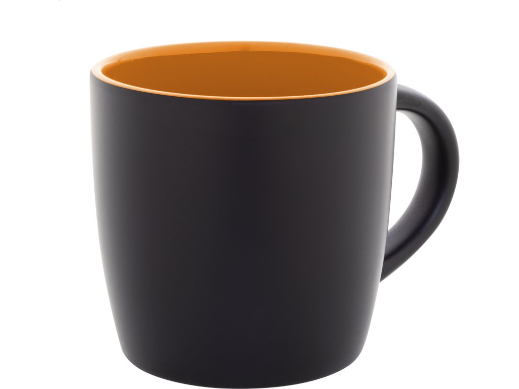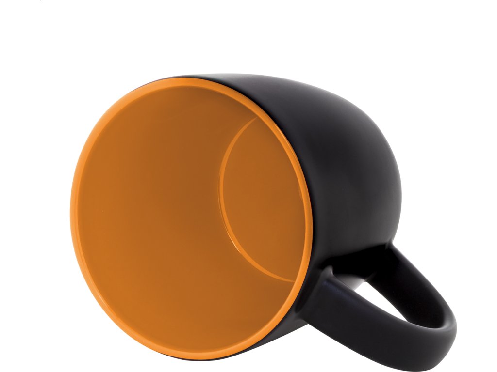 Černý keramický hrnek s barevným vnitřkem, 300 ml. Se speciální vrstvou pro gravírování, gravírované logo ladí s vnitřní barvou. V kraftové papírové krabici.