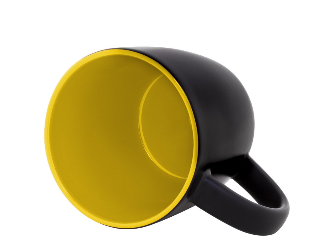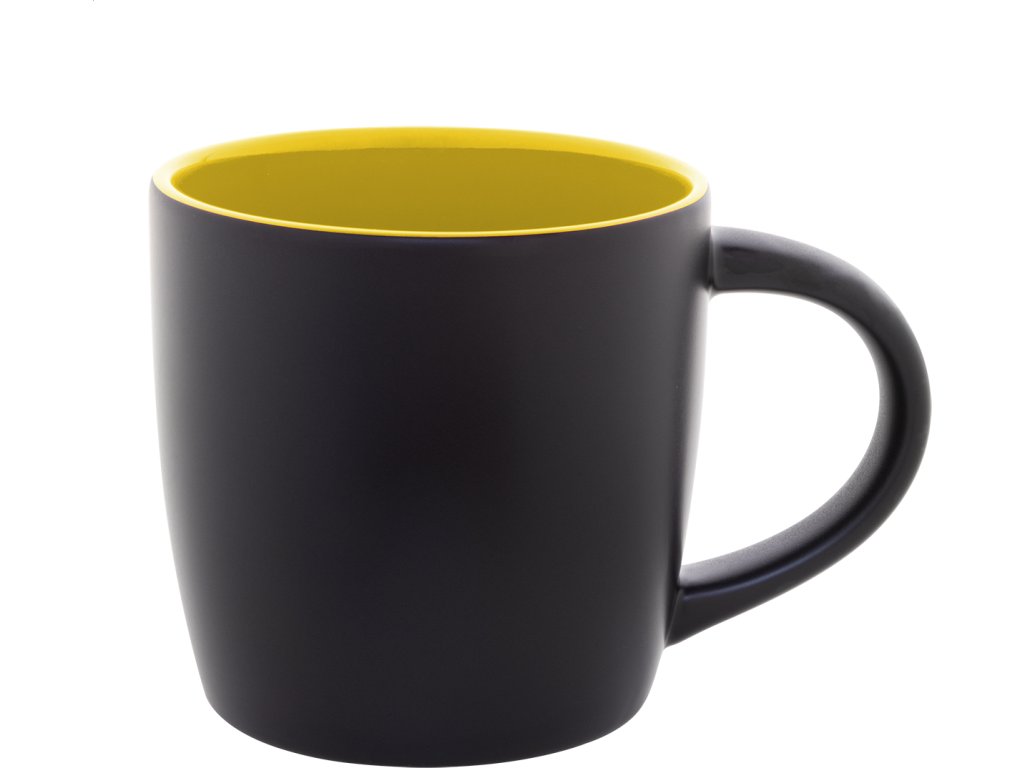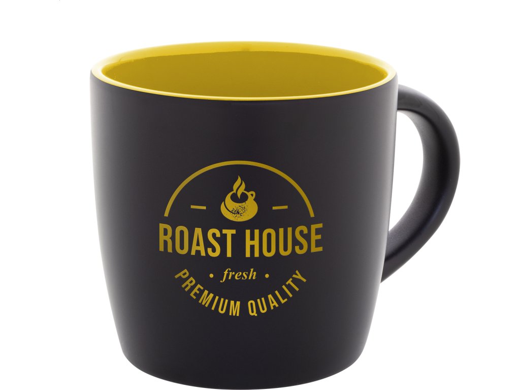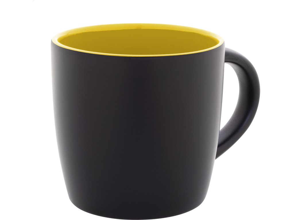 Černý keramický hrnek s barevným vnitřkem, 300 ml. Se speciální vrstvou pro gravírování, gravírované logo ladí s vnitřní barvou. V kraftové papírové krabici.
