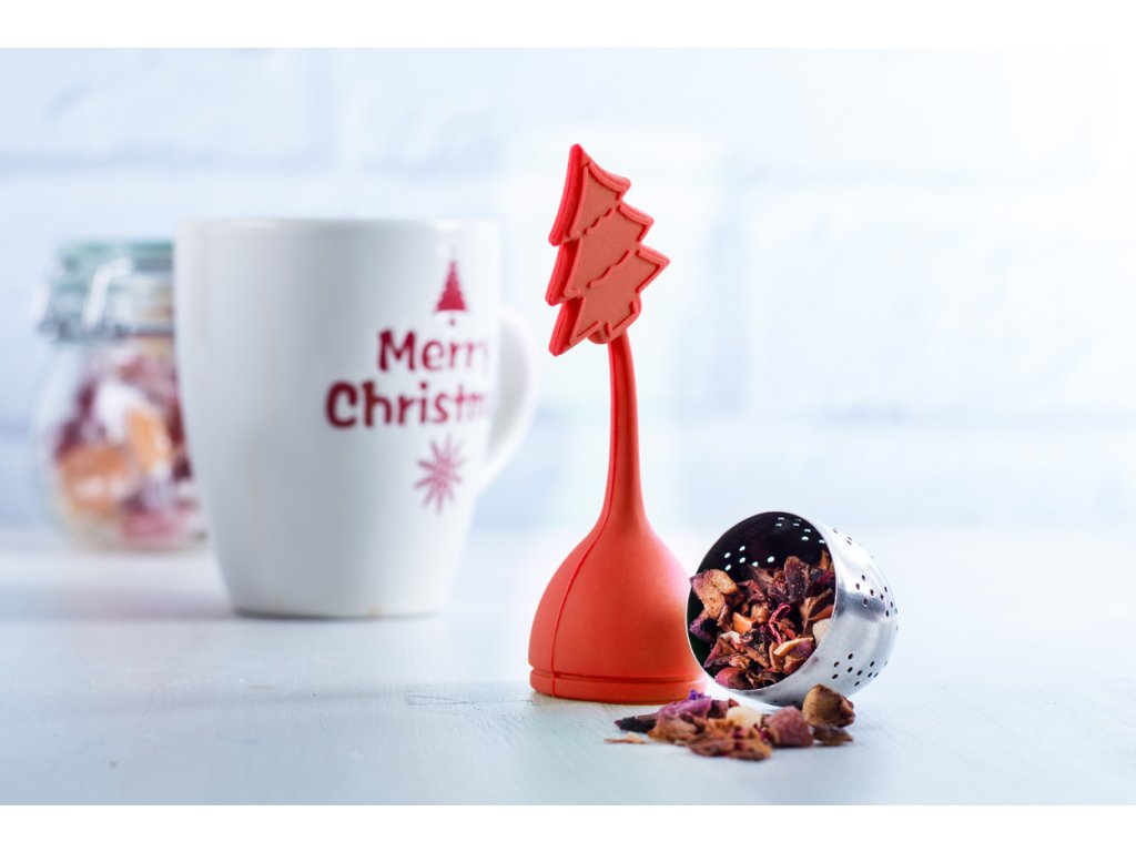 Čajítko s vánočním stromečkem, silikon/nerez ocel.