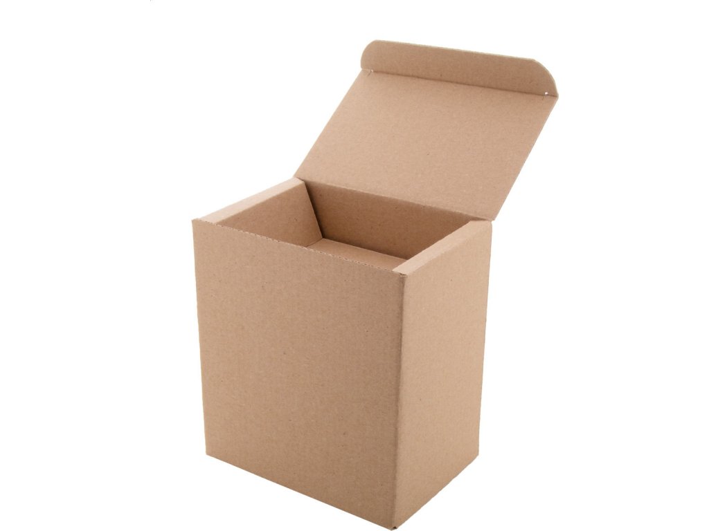 Krabice z recyklované kraftové vlnité lepenky na hrnek 300/400 ml.