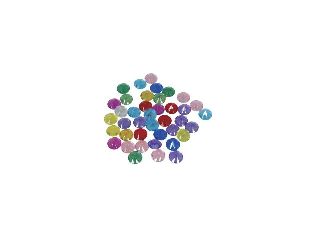 Balení obsahuje: 50 ks mix plastových drahokamů v zářivých barvách.