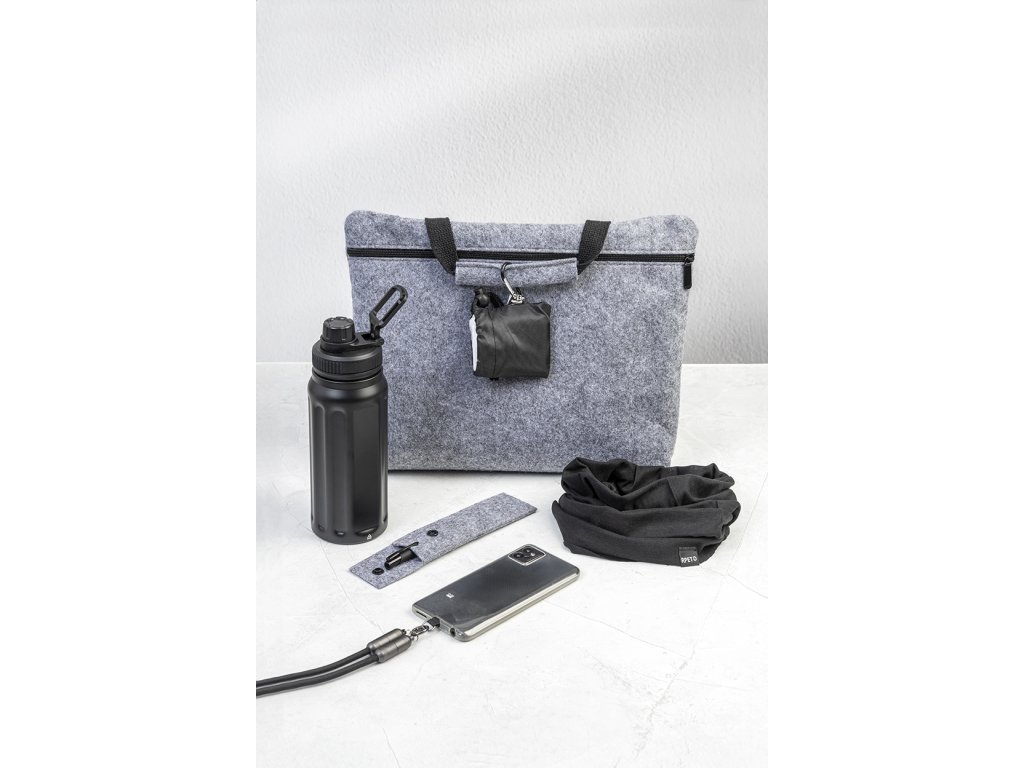 Dvoustěnná termoska z recyklované nerezové oceli s vertikálními drážkami. S víčkem z polypropylenu a s integrovaným držadlem. 540 ml.