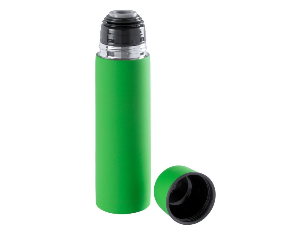 Nerezová termoska s pogumovanou úpravou, 500 ml. V papírové krabičce.