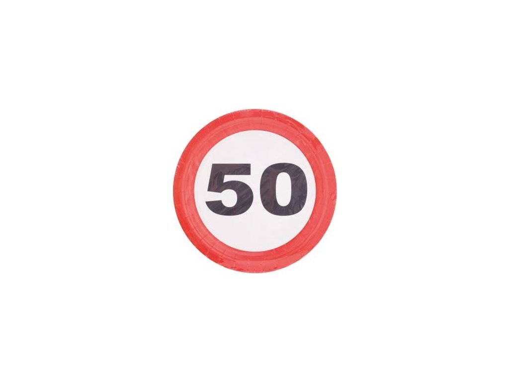 Originální a vtipné talíře v designu dopravní značky jsou ideální k prostření slavnostního stolu na oslavu 50. narozenin.