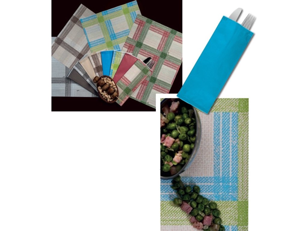 Vysoce kvalitní zpevněná a uzavřená papírovo/polyethylenová kapsička na příbory Infibra s vloženým bílým dvouvrstvým ubrouskem 38x38cm, rozměr kapsičky 25x11cm
