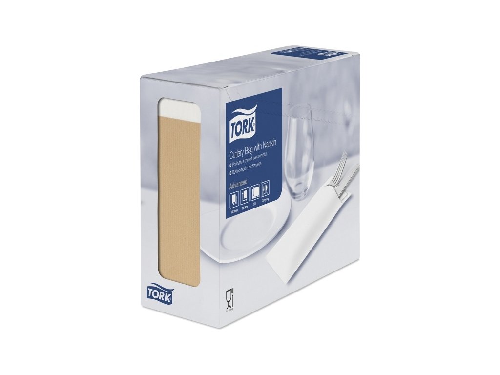 kapsička na příbory Tork Advanced, 20x8,5cm, s vloženým bílým ubrouskem 39x23cm