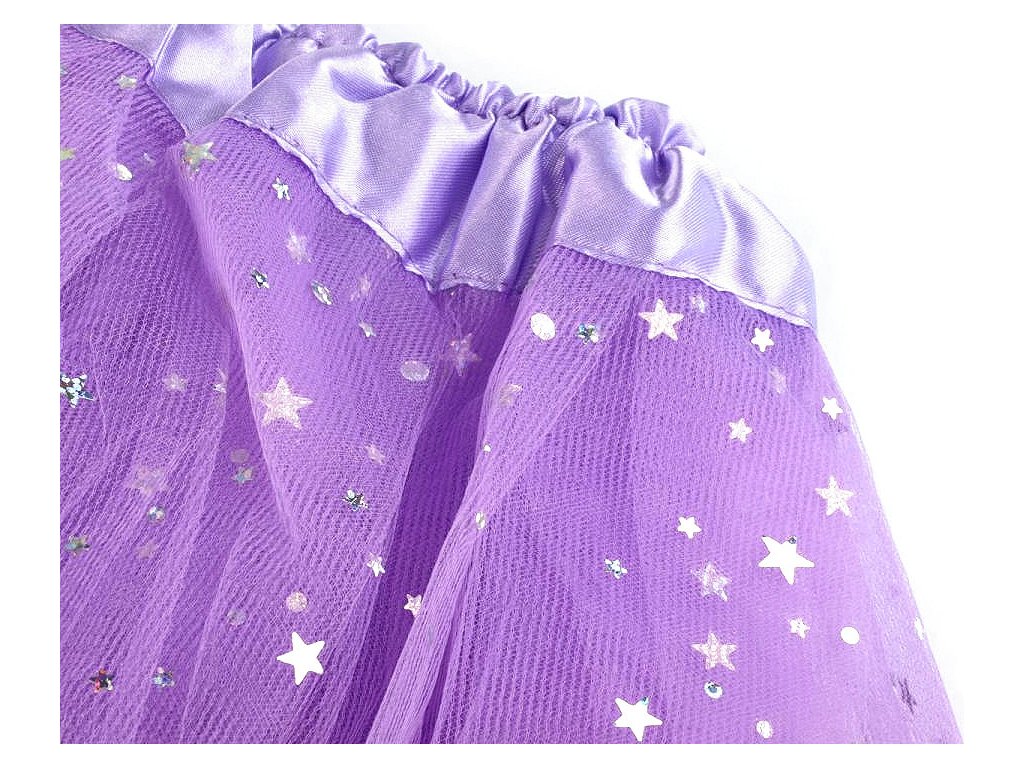 Karnevalovou sukýnku si zamilují všechny malé, ale i dospělé slečny. Skládá se ze tří tylových vrstev. Horní vrstva je bohatě pokrytá třpytivými flitry. Sukně má v pase gumičku, aby se mohla dobře přizpůsobit své nositelce. Sukýnku doporučujeme před použitím nechat volně mimo sáček (vyvětrat).