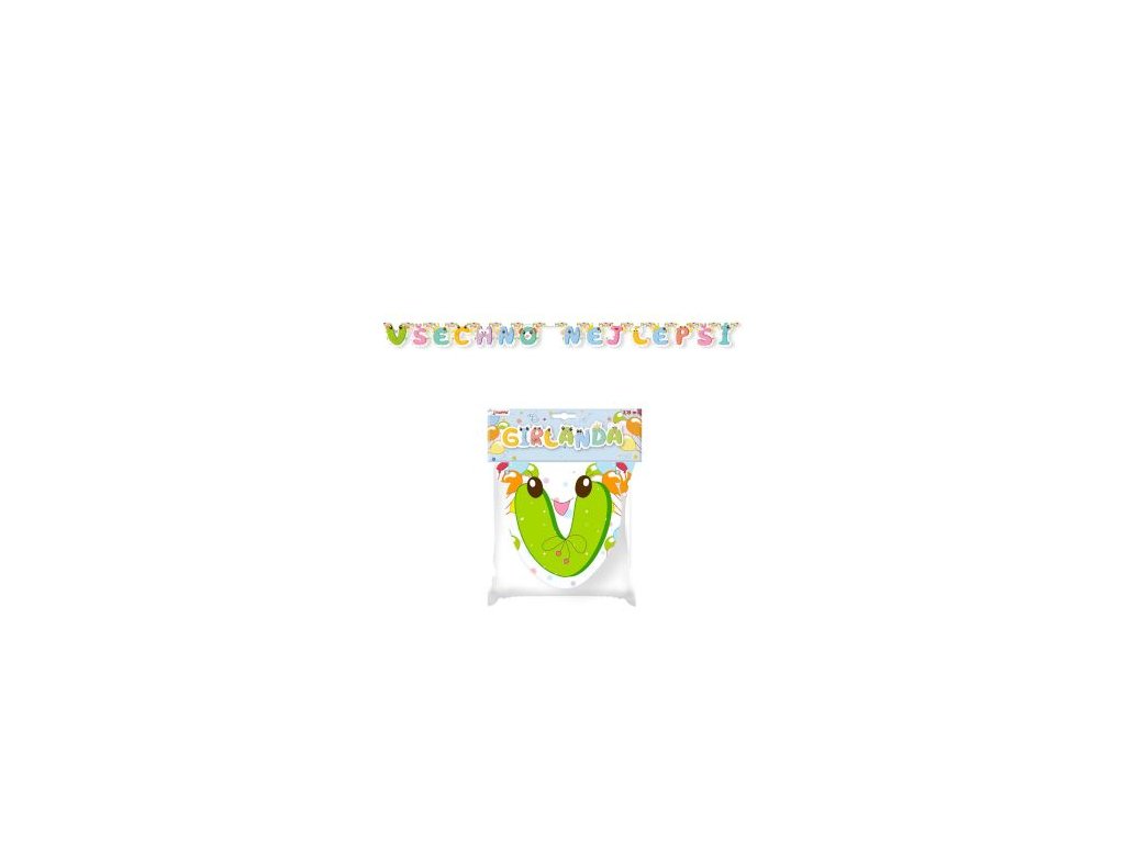 Super tip na oslavu - girlanda Všechno nejlepší! Stačí roztáhnout a pověsit. S touto parádní girlandou bude tvoje výzdoba na párty nepřehlednutelná. Délka cca 215 cm.