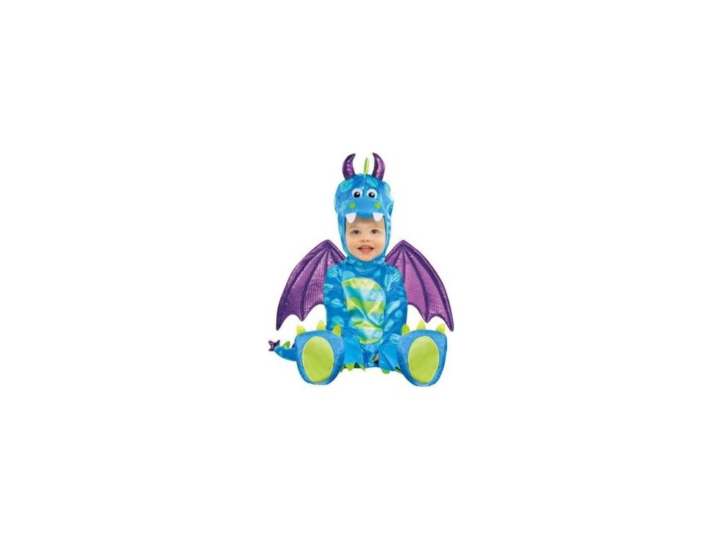Modrozelený overal s veselou čepicí, fialovými křídly a roztomilými detaily promění vaše děťátko v hvězdu každého karnevalu i oslavy.