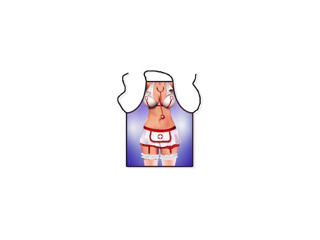 Zástěra Zdravotní sestra je klasická humorná kuchařská zástěra pro ženy s obrázkem zdravotní sestry v erotickém oblečení se stetoskopem na krku. Tato pěkná zástěra je vynikající a vtipný dárek pro vaši polovičku k jakékoliv příležitosti. Zástěra je od českého výrobce.