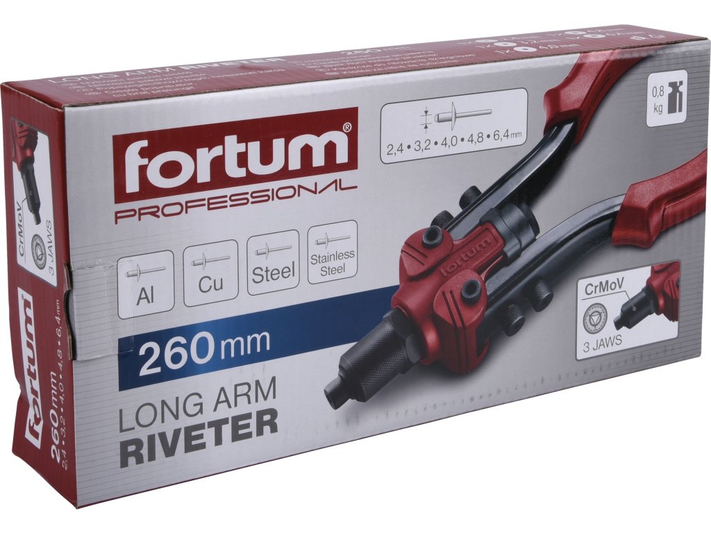 FORTUM kleště nýtovací pákové, 2,4-6,4mm, 260mm 4770611