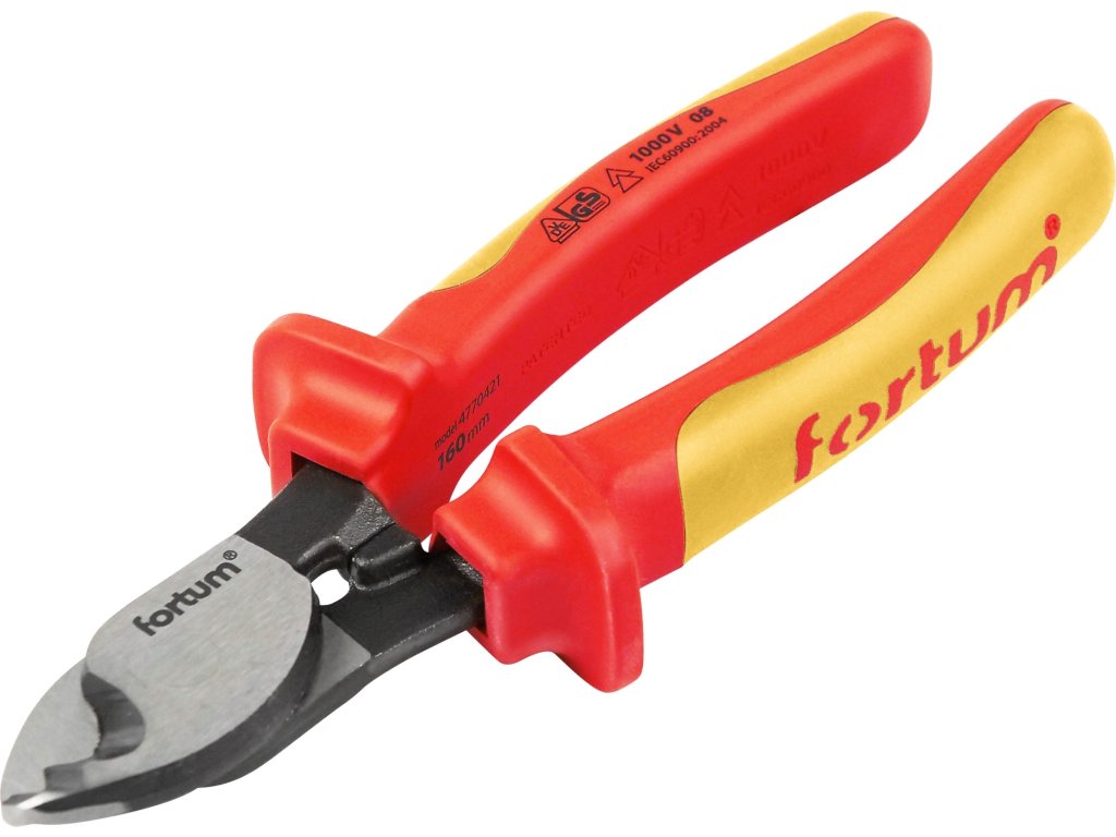 Čistá práce. Takové jsou Fortum kleště na kabely. Dokáží snadno přestřihnout kabely silné téměř jako prst - rychle, přesně, čistě a bez deformovce jednotlivých vodičů. Díky speciálně tvarovanému ostří můžete pomocí čelistí kabely/vodiče pohodlně odizolovat. A to vše třeba i „naživo“ – rukojeti jsou izolované pro práci do 1000V.