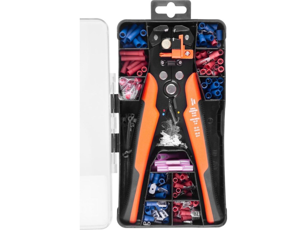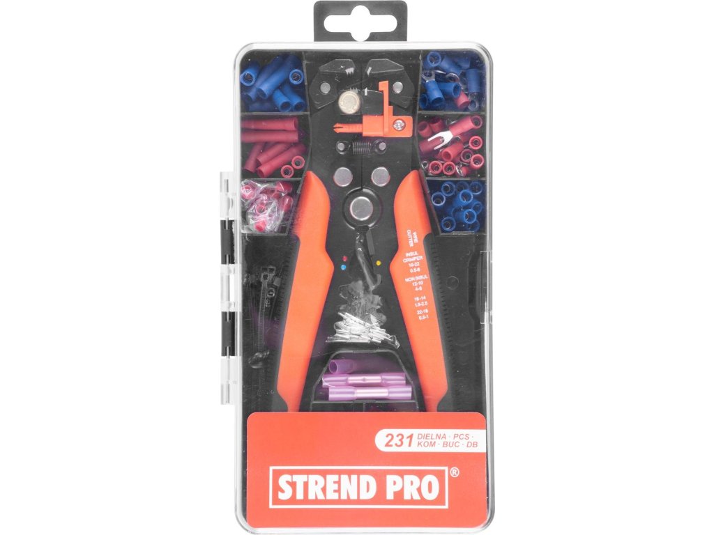 Kliešte Strend Pro AWS 338, odblankovacie + sada 230 ks koncoviek