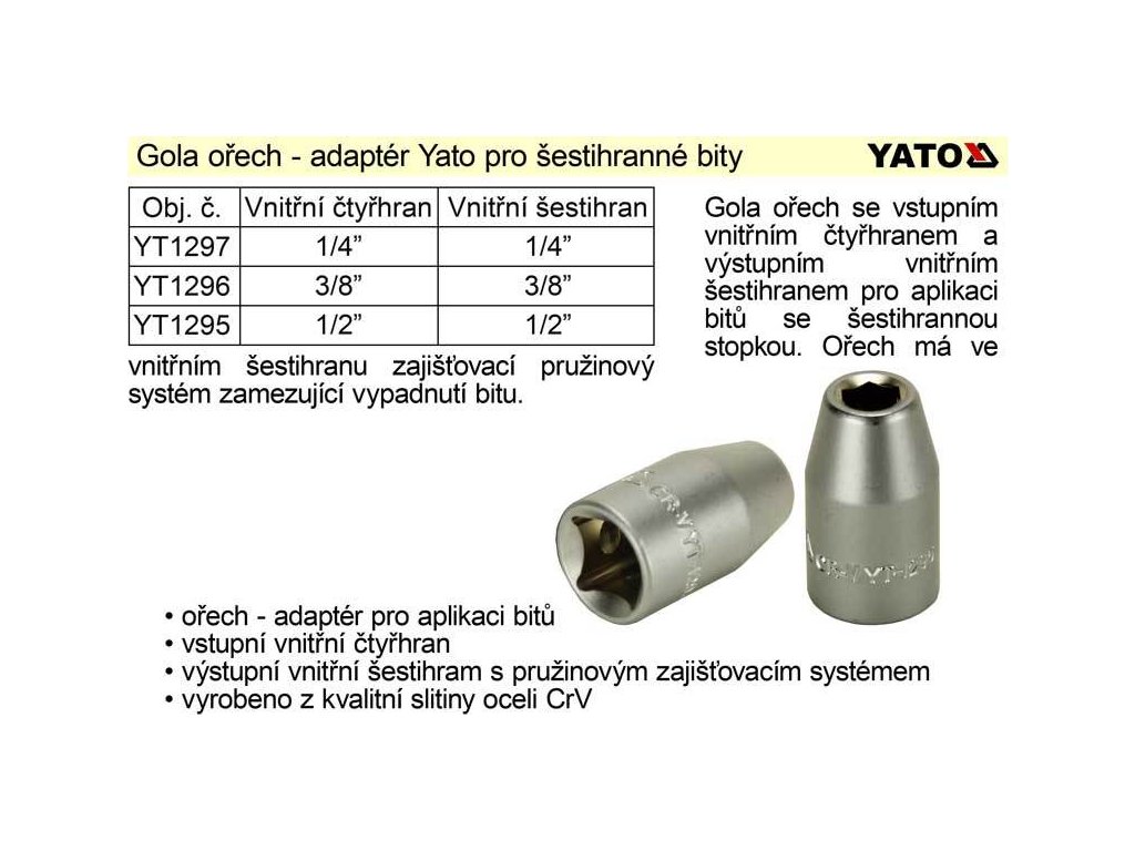 Gola ořech 1/4", adaptér pro bity se šestihranem 1/4