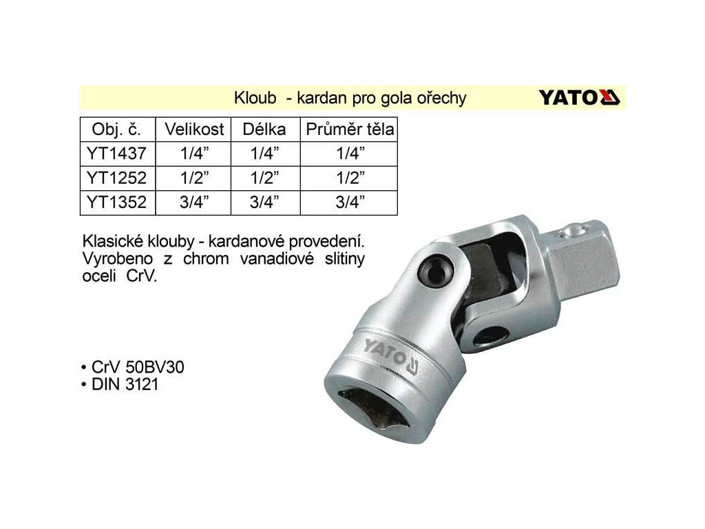 Klasický kloub 3/4" - kardanové provedení. Vyrobeno z chrom vanadiové slitiny oceli CrV• Kloub 3/4" pro gola ořechy• Vnitřní čtyřhran 3/4"• Vnější čtyřhran 3/4"• Celková délka 106 mm• Průměr těla 40 mm