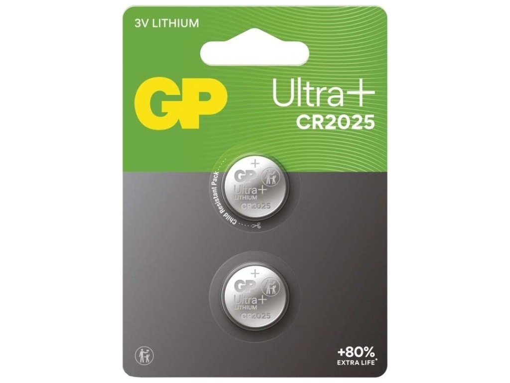 Lithiová knoflíková baterie GP Ultra plus CR2025, 2 ks