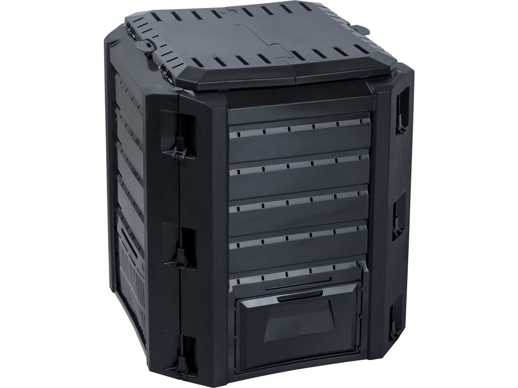 Kompostér je uzavíratelný, čímž je zabráněno šíření zápachu a hmyzu a nemá žádné dno, takže umožňuje přímý styk s půdou."