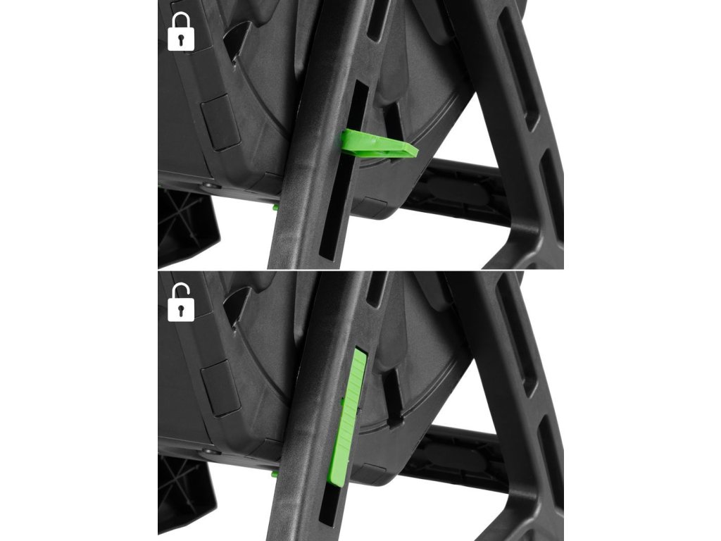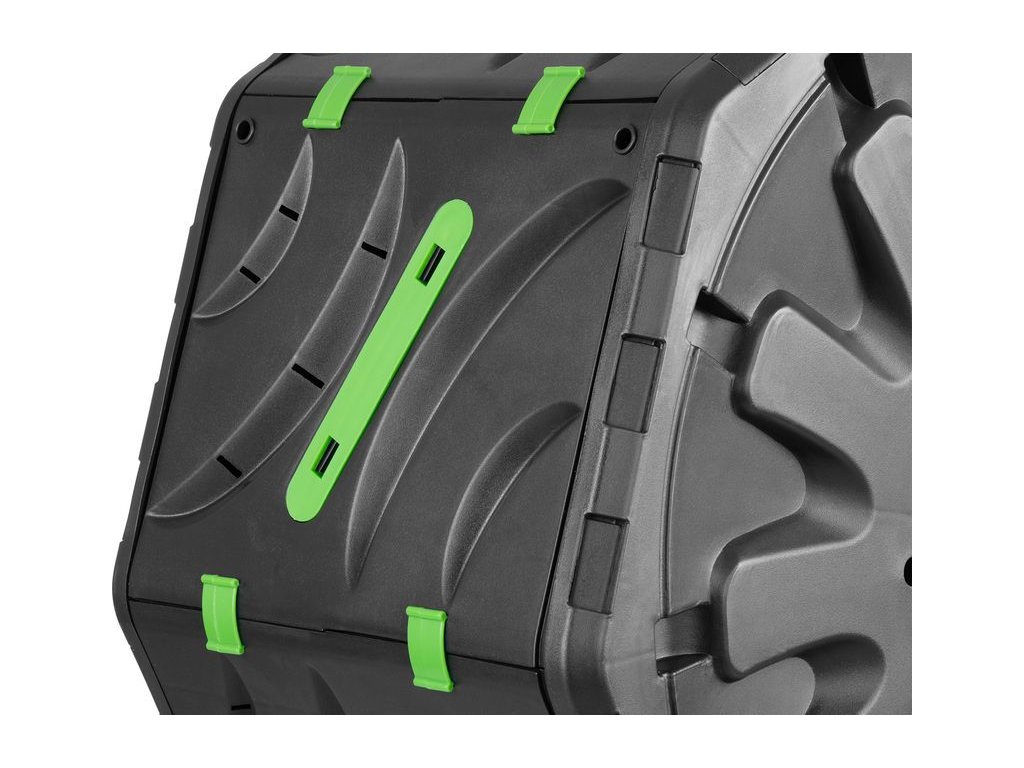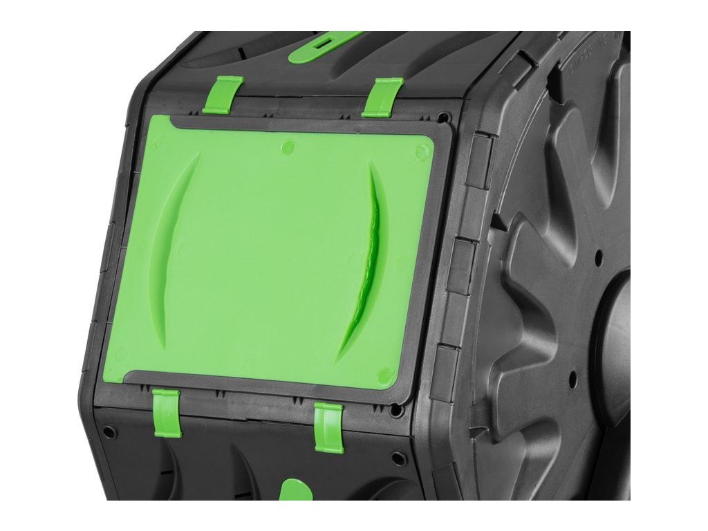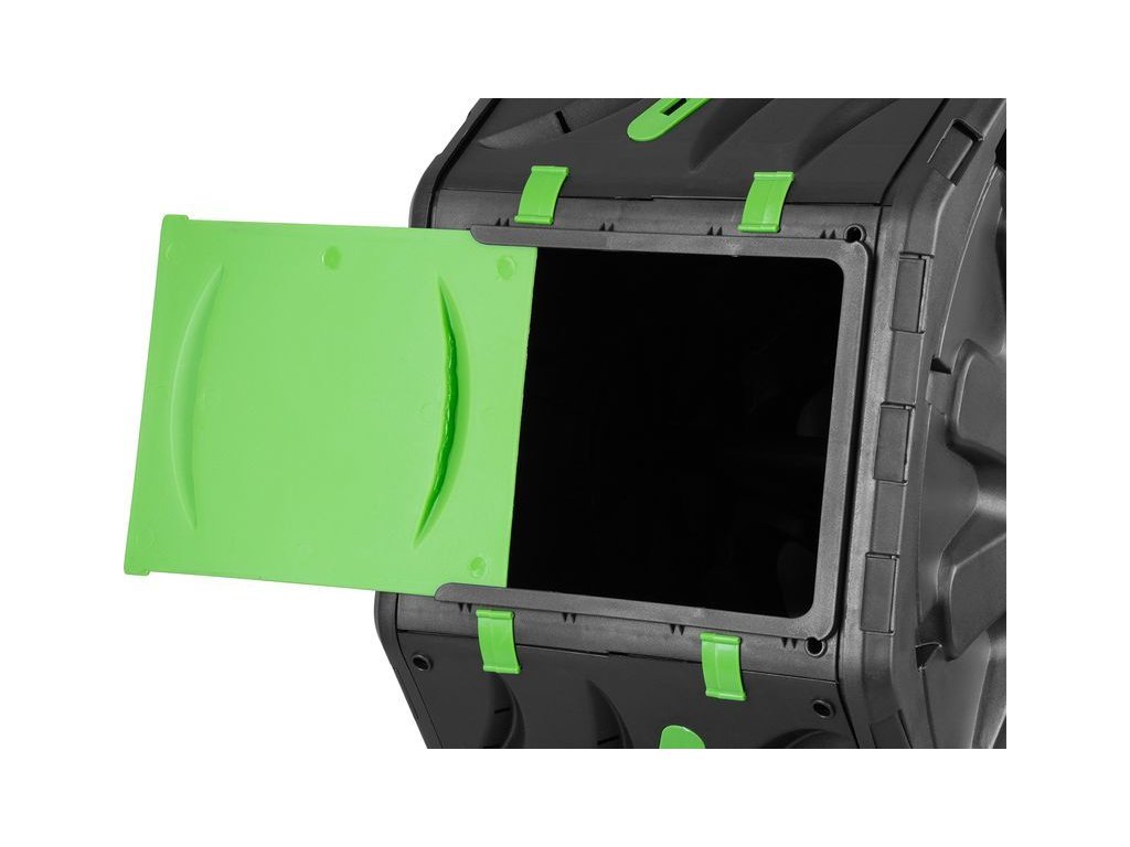 Kompostér je vyroben z pevného, lehkého a povětrnostním vlivům odolného materiálu s větracími otvory, kterými proudí vzduch dovnitř.