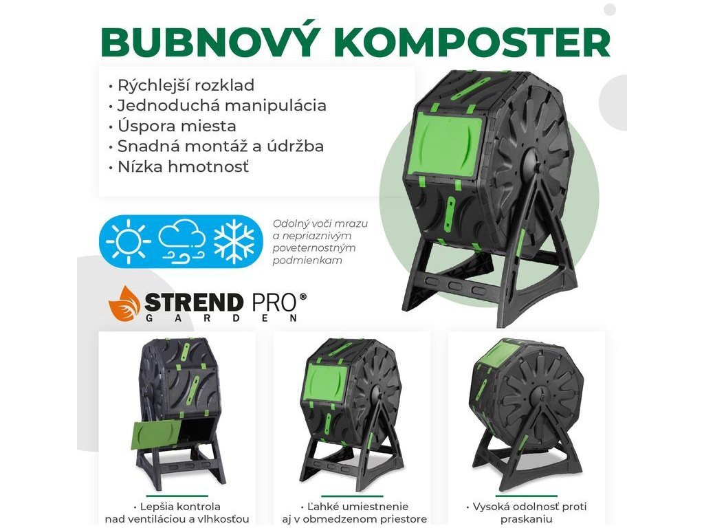 Komposter Strend Pro Garden, bubnový, 70 lit., čierny, 55,5x36x72 cm