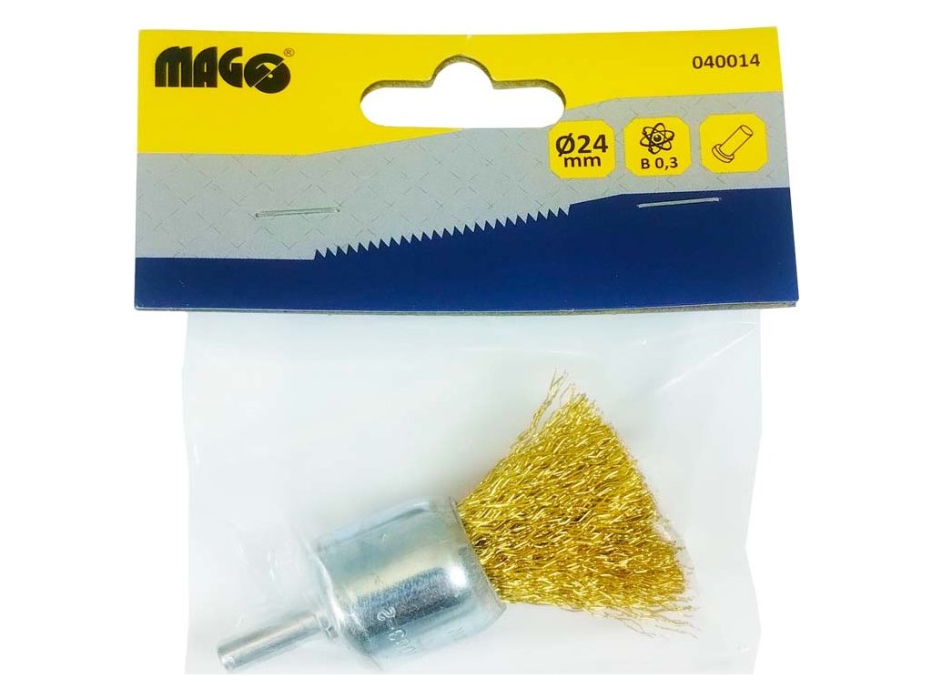 Kartáč rotační koncový 25mm mosazný vlnitý drát pro vrtačku