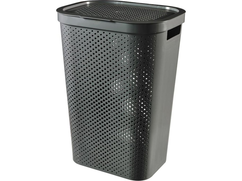 Koš na špinavé prádlo, objem 60 litrů, prodyšný děrovaný design, víko součástí balení. Postranní úchyty pro pohodlné přenášení. Kvalitní plast, snadná údržba. Rozměry 44 x 60 x 35 cm, grafitová barva.