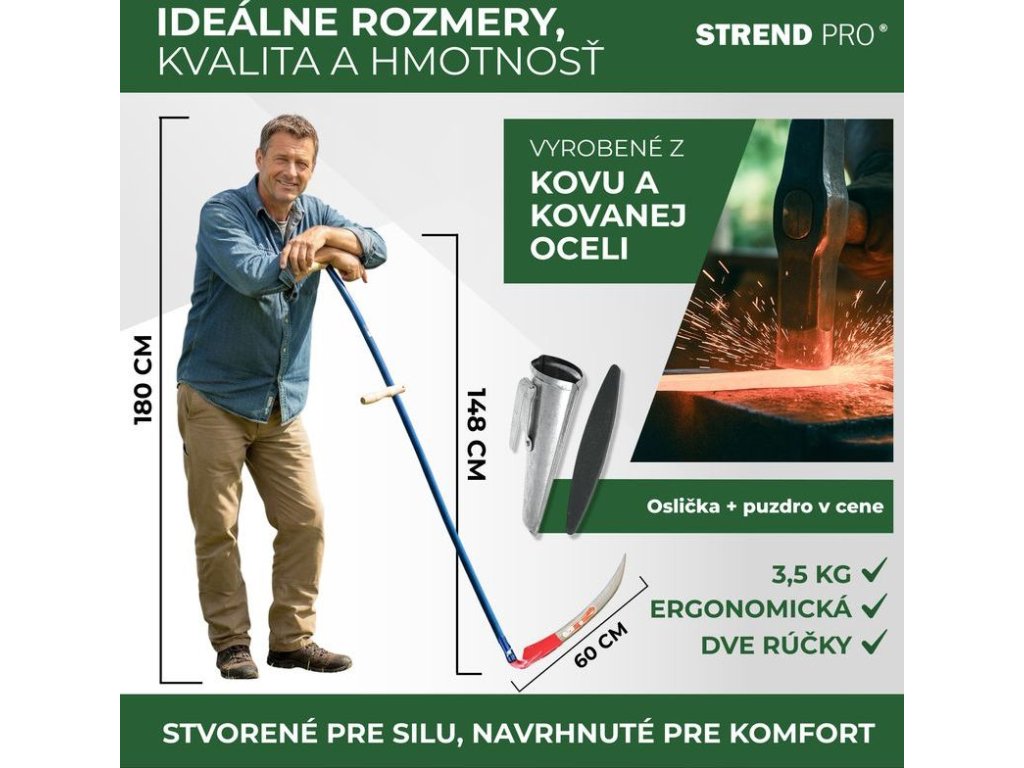 Tradiční kovaná kosa pro sečení trávy. Délka čepel je 60 cm.