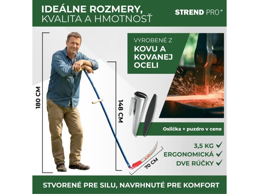 Kosa EURO 70 cm, kovaná + kovové kosisko, na trávu