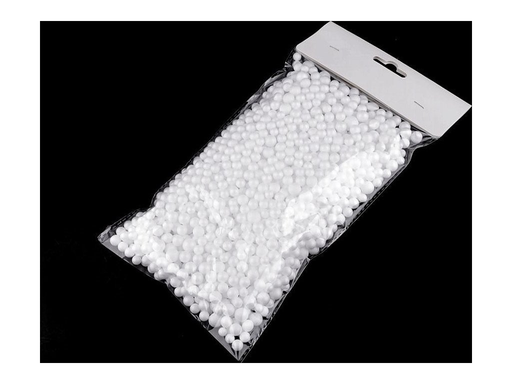 Drobné dekorační polystyrenové kuličky využijí především floristé a aranžéři. Dokážou vykouzlit dokonalou iluzi sněhu. Můžete je využít k ozdobení truhlíků, květináčů apod. Jsou zajímavé nasypané v průhledných nádobách a dozdobené různými větvičkami a stvoly. Jsou vhodné i jako výplň do šitých dekorací a dutých předmětů. Používají se i na výrobu dekoračních stromečků. Větší polystyrenová koule se polepí těmito drobnými, napíchne se na vhodný kmen a naaranžuje do květináče. V sáčku se nachází cca 1300 ks.